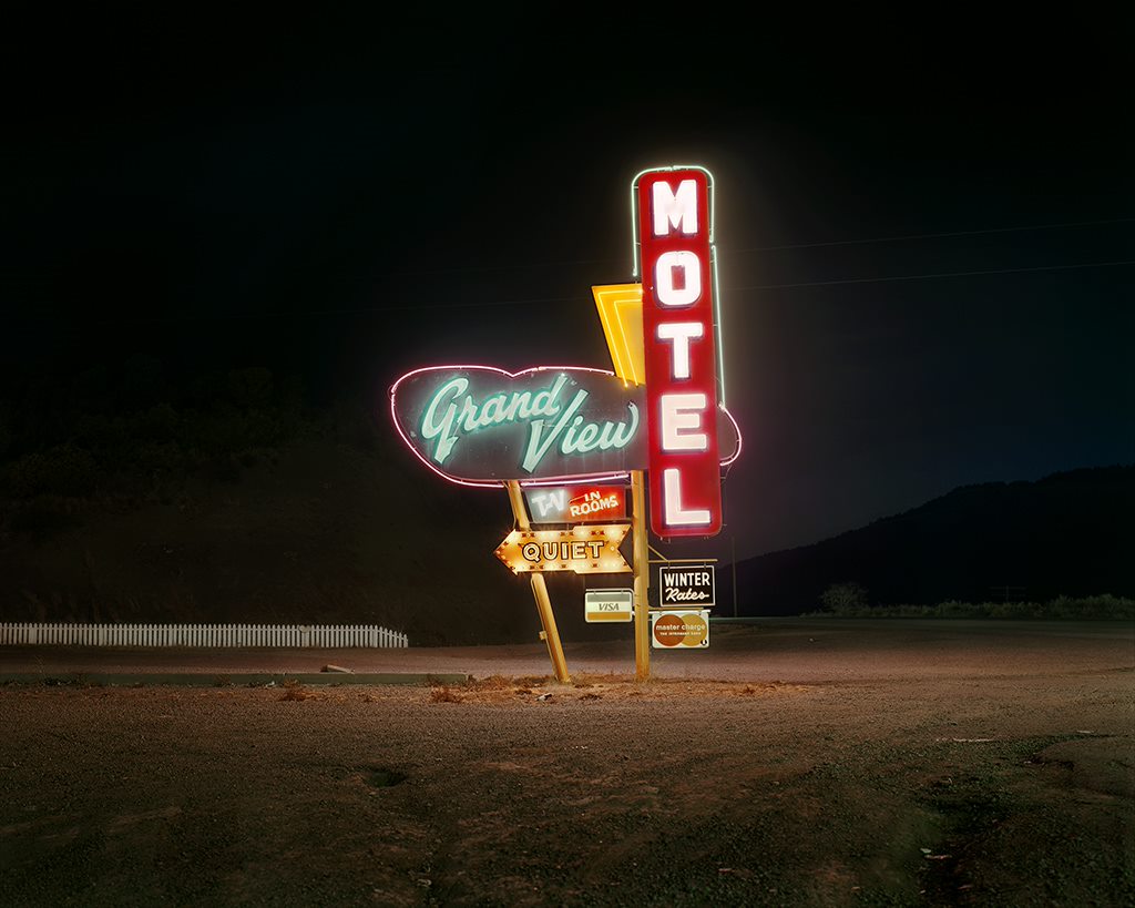 Photo: Steve Fitch, “Grand View Motel, Highway 87, Raton, New Mexico, December 18, 1980,” printed 2018. Archival pigment print.